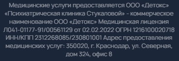 Частная психиатрическая клиника Стукаловой предлагает услугу кодирования от наркомании. Эта процедура проводится в стационаре и на дому полностью анонимно. Чтобы проконсультироваться с наркологом или задать вопросы о ценах, звоните по телефону горячей линии – ☎️ +78125078144.